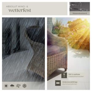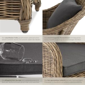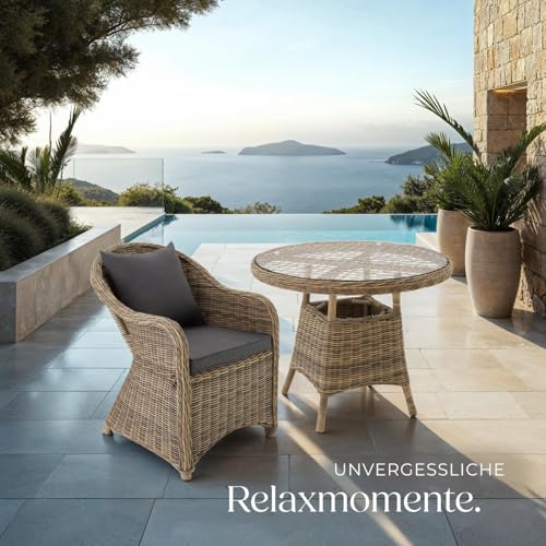 - AUSGEZEICHNETE WETTERBESTÄNDIGKEIT & EINFACHE PFLEGE: Das Gartenmöbel Rattan wetterfest ist speziell für den Außenbereich konzipiert und hält verschiedenen Witterungsbedingungen stand. Die Kombination aus wetterfestem Polyrattan, wasserabweisenden Sitzpolstern und bodenschonenden Kunststofffüßen macht ihn zum idealen Balkon Möbel oder Lounge Sessel. Profitiere von einem geringen Pflegeaufwand und mehr Zeit, Dein Zuhause im Freien zu genießen.