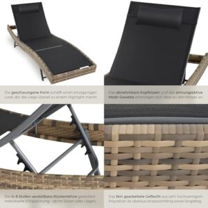 - SONNENLIEGEN MIT LIEGEFLÄCHE AUS MESH-GEWEBE: Die Liegefläche der Balkonliege besteht aus atmungsaktivem Mesh-Gewebe, das auch bei längerem Liegen für ein angenehmes Klima sorgt. Das feine Geflecht aus UV-beständigem Polyrattan macht die Liege besonders langlebig und wetterfest. Ideale Beschaffenheiten für Lounge Möbel outdoor, an denen Du lange Freude haben wirst.