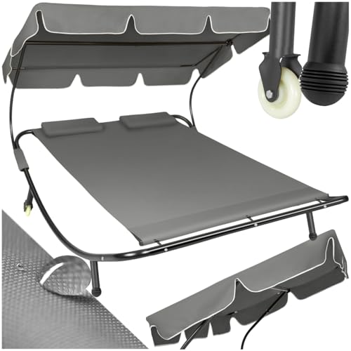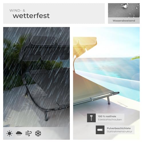 - TRÄUME UNTER FREIEM HIMMEL: Mit dieser Gartenliege kannst Du sowohl auf dem Balkon als auch im Garten entspannen. Geeignet für den Innen- und Außenbereich, stell Dir vor, Du liegst auf einer weichen Strandmatte, auch wenn Du nur auf Deiner Terrasse oder im Garten bist. Diese Liege bietet Platz für bis zu 2 Personen - Perfekt für gemütliche Stunden zu zweit!