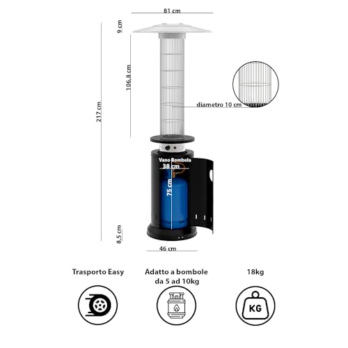 - EINFACHE HANDHABUNG: Eclissi ist voll kompatibel mit Propan/Butan-Flaschen von 5 bis 10 kg und verfügt über praktische Räder, um den Ofen überall zu bewegen und zu positionieren.