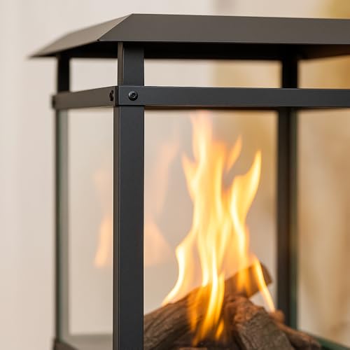 - MODERNES DESIGN: Gehärtetes Glas, das die lebendige Flamme dieses Gasofens schützt und aufwertet, unglaublich realistisch mit den mitgelieferten dekorativen Accessoires, Hölzern und Lavastein