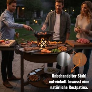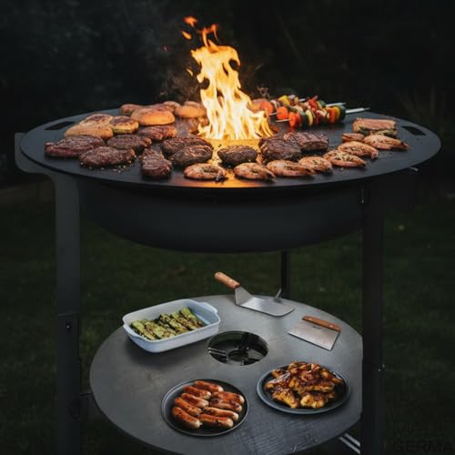 - 🔥 𝟮-𝗶𝗻-𝟭 𝗙𝗲𝘂𝗲𝗿𝘀𝗰𝗵𝗮𝗹𝗲 & 𝗙𝗲𝘂𝗲𝗿𝗽𝗹𝗮𝘁𝘁𝗲 – Lagerfeuer-Romantik und BBQ-Genuss in einem! Die perfekte Kombination aus Feuerschale und Grillplatte für gesellige Abende im Garten oder auf der Terrasse. Das passende Zubehör finden Sie in den Variationen.