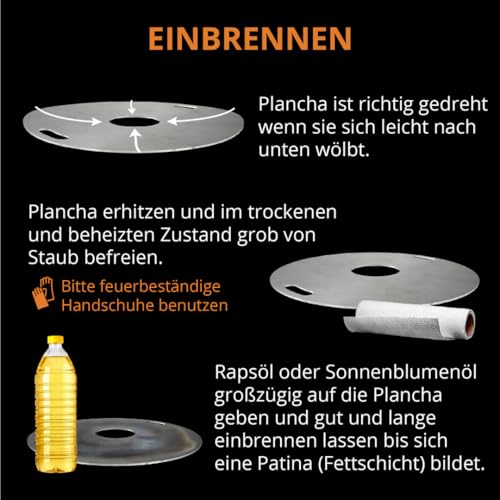 - 🔥 𝗚𝗹𝗲𝗶𝗰𝗵𝗺äß𝗶𝗴𝗲 𝗛𝗶𝘁𝘇𝗲𝘃𝗲𝗿𝘁𝗲𝗶𝗹𝘂𝗻𝗴 & 𝗣𝗮𝘁𝗶𝗻𝗮-𝗘𝗳𝗳𝗲𝗸𝘁 – Die Feuerplatte speichert die Wärme optimal und entwickelt mit der Zeit eine natürliche Antihaft-Beschichtung (Patina) für ein perfektes Grillerlebnis.