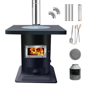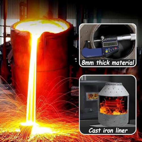 - 【Robuster Gusseisenofen】 Alle Teile des Ofens und sein Zubehör sind benutzerfreundlich und robust konstruiert. Sie halten jeder rauen Außenumgebung stand. Die zentrale Ofenkammer besteht aus 8 mm starkem Gusseisen. Es spart Brennstoff und verbessert die Heizwirkung erheblich.