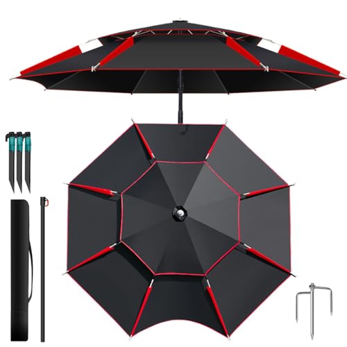 - Unübertroffene Stärke: Der Outdoor-Sonnenschirm verfügt über 16 8-mm-Glasfaserstäbe und doppelschichtige große Luftlöcher, die ihn sehr dick und verschleißfest machen und ihn langlebig und stark genug machen, um rauen Winden standzuhalten. Komplett mit Erdungsstecker aus Metall, winddichtem Stecker und Schirmstange aus Metall
