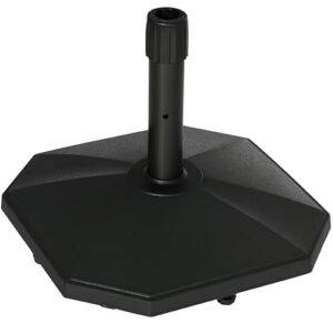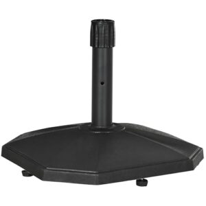 - **Kompakte und elegante Form**: Dank seiner kompakten Größe und des robusten Kunststoffgehäuses passt der Schirmständer in jede Umgebung. Seine schlanke Form und das schwarze Design machen ihn zu einem ästhetischen Element in Ihrem Outdoor-Bereich.