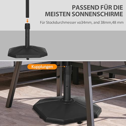- **Stabile Fixierung für Ihren Schirm**: Mit einem Gewicht von 18 kg und Zementfüllung bietet dieser Schirmständer eine sichere und feste Haltbarkeit, um Ihren Sonnenschirm bei Wind und Wetter stabil zu halten. Ideal für Terrassen, Balkone und Gärten.