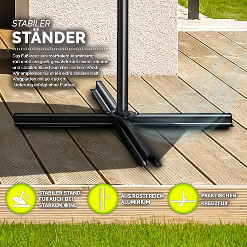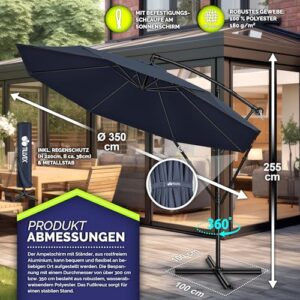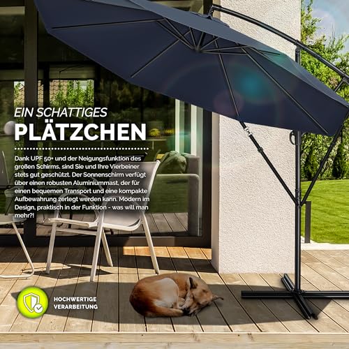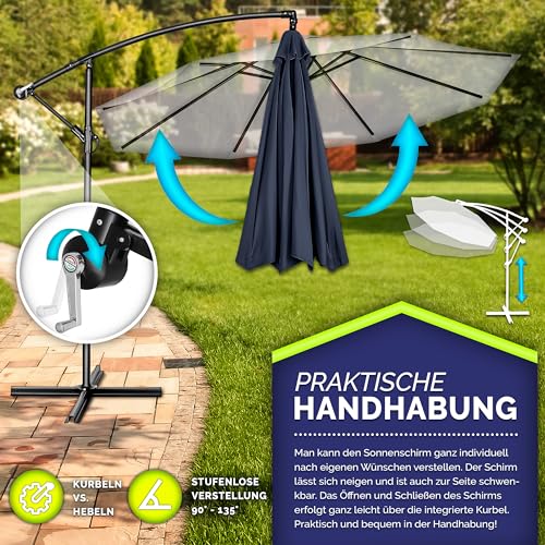 - EINFACH ZU VERSTELLEN: Der Neigungswinkel ist stufenlos mit einer Handkurbel verstellbar. Somit ist der Ampelschirm perfekt für den Balkon, Terrasse, Garten oder als Marktschirm geeignet.