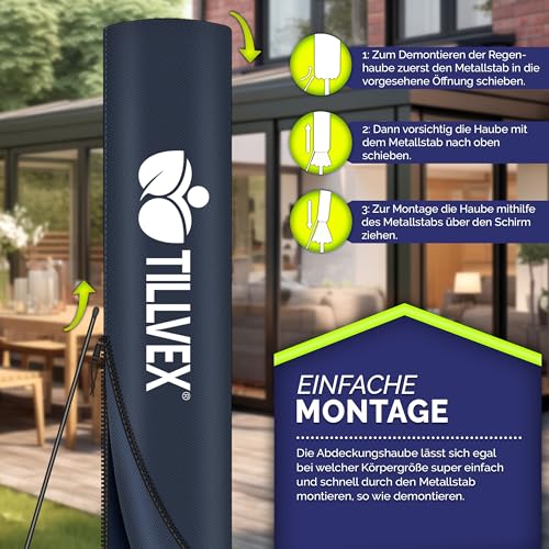 - PERFEKT FÜR JEDEN BEREICH: Durch die wasserabweisende Bespannung ist der Schirm perfekt für den Außenbereich geeignet. Schützen Sie sich mit dem tillvex Sonnenschirm vor plötzlichem Sommerregen, UV-Strahlung und blendendem Licht.