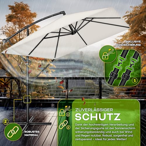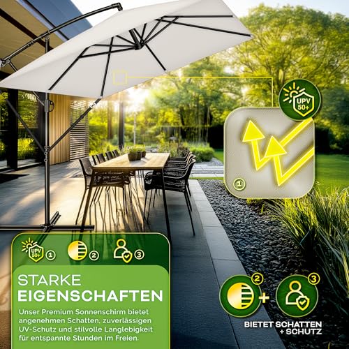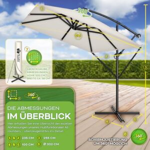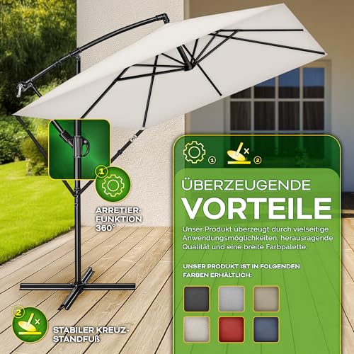 - EINFACH ZU VERSTELLEN: Dieser rechteckige Ampelschirm aus Aluminium ist um 360° drehbar und bietet maximale Flexibilität, um den Schattenbedarf je nach Sonnenstand optimal anzupassen. Durch seine eckige Form kann er besonders effizient platziert werden. Zusätzlich sorgt die integrierte Windsicherung für extra Stabilität, selbst bei windigen Bedingungen.