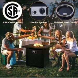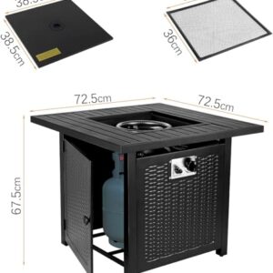 - 🔥【Benutzerfreundliches Design】: Die große 28-Zoll Feuerstelle bietet mehr Platz und eignet sich sehr gut für Familienfeiern oder Lagerfeuerpartys.Gasfeuerstellen outdoor eignen sich perfekt für Balkon, Garten, Terrass usw. Aus starkem Stahl, vermeidt Risse und Beschädigungen der Werkbankoberfläche. Der vollständig geschlossene verdeckte Tischhauptkörper kann die Gasflasche perfekt verstauen, ohne die Ästhetik zu beeinträchtigen.