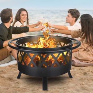 - 🔥Multifunktional: Die Feuerschale mit Grillrost zeichnet sich durch große Kapazität und Tragbarkeit aus und kann gleichzeitig die Funktion Grillen und Heizen erfüllen, ideal für Grillpartys in Gärten und Stränden eignet.