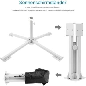 - Vielseitig einsetzbar: ein idealer Begleiter für Gartenveranstaltungen, Balkonentspannung, Poolschutz, Campingabenteuer und Picknickvorbereitungen. Dieser Schirmständer passt sich leicht an verschiedene Outdoor-Ac an