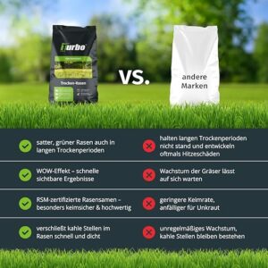 - RSM-geprüfte Qualität: Die Turbogrün Rasensamen entsprechen der „Regel-Saatgut-Mischung“ und bieten höchste Qualität für eine langanhaltend schöne Rasenfläche.