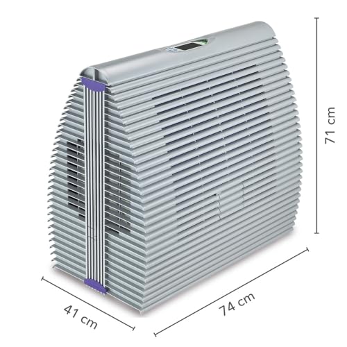 - Zwei Tasteneinstellungen genügen, und das Gerät übernimmt automatisch die Steuerung von Gebläse und Befeuchtungsfunktion zur Erreichung des gewünschten Luftfeuchtewertes. Der integrierte Feuchtesensor ermittelt dabei fortwährend die aktuellen Klimadaten und schaltet das Gerät bei Bedarf selbsttätig ein und aus.