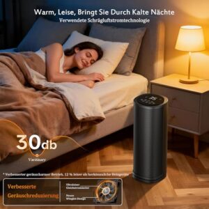 - Ultraleiser Betrieb: Mit einem Gebläse, das eine Technologie mit geneigtem Luftstrom verwendet, erleben Sie Ruhe mit der ultraleisen Leistung unseres Raumheizers, die 12 % leiser ist als bei herkömmlichen Modellen. Sie können ihn in Schlafzimmern, Büros oder Wohnzimmern ohne störende Geräusche verwenden, damit Sie sich bequem konzentrieren oder ausruhen können.