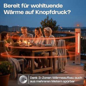 - DAS BESTE IN EINEM: Vergiss Terassenheizstrahler außen Gas. Mit modernster Technik ersetzt der elektrische Terrassenheizer jede herkömmliche Heizlampe Outdoor & jeden Dunkelstrahler. Genieße sofortige Infrarotwärme im Garten, auf Balkon oder Terrasse.