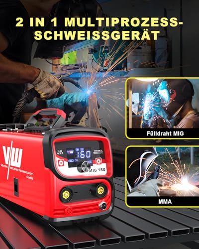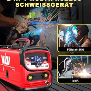 - 【Vielseitige Schweißoptionen】: Durch die Unterstützung von MIG- (gaslos) und MMA-Schweißen eignet sich dieses Gerät für verschiedene Materialstärken und Anwendungen, so dass Ihr Fülldraht Schweissgerät Set für jedes Projekt geeignet ist.