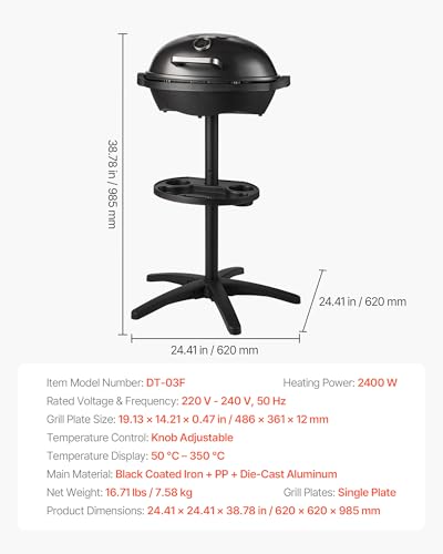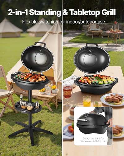 - 2-in-1-Vielseitig einsetzbar: Der VEVOR Elektrogrill verfügt über einen abnehmbaren Ständer und kann so ganz einfach im Freien stehend oder drinnen auf einem Tisch verwendet werden. Ob Familienfeier oder Grillparty im Garten – er sorgt jedes Mal für ein perfektes Grillerlebnis.