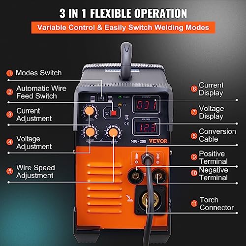 - Einfaches Bedienfeld und 3-in-1: MIG-Schweißmaschine hat MIG MMA TIG-Modus. Die Schweißmaschine hat Knöpfe, um verschiedene Stromeinstellungen zu unterstützen, und Drahtgeschwindigkeitsregelung. Die LCD-Digitalanzeige ist klar und einfach zu lesen. Mit dieser Multifunktions-Schweißmaschine werden Sie Zeit und Geld sparen, um unterschiedliche Schweißanforderungen zu erfüllen.