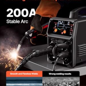 - 5-in-1-MIG-Schweißgerät: Dieses 200A 5-in-1-Pro-MIG-Schweißgerät unterstützt verschiedene Funktionen – MIG Pluse, gasloses MIG, Gas-MIG, MMA und Lift TIG. Die innovative Impulsschweißfunktion bietet schnelle, hochwertige Schweißnähte mit geringer Spritzerbildung und eine bessere Wärmekontrolle als herkömmliche MIG-Schweißgeräte, wodurch perfekte Schweißnähte bei niedrigeren Temperaturen möglich sind (Hinweis: Aluminium-Schweißbrenner ist nicht im Lieferumfang enthalten und muss separat erworben werden; Lift WIG-Brenner nicht enthalten)
