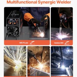 - 5-in-1-MIG-Schweißgerät: Dieses 250A 5-in-1-Pro-MIG-Schweißgerät unterstützt verschiedene Funktionen – MIG Pluse, gasloses MIG, Gas-MIG, MMA und Lift TIG. Die innovative Impulsschweißfunktion bietet schnelle, hochwertige Schweißnähte mit geringer Spritzerbildung und eine bessere Wärmekontrolle als herkömmliche MIG-Schweißgeräte, wodurch perfekte Schweißnähte bei niedrigeren Temperaturen möglich sind (Hinweis: Aluminium-Schweißbrenner ist nicht im Lieferumfang enthalten und muss separat erworben werden; Lift WIG-Brenner nicht enthalten)