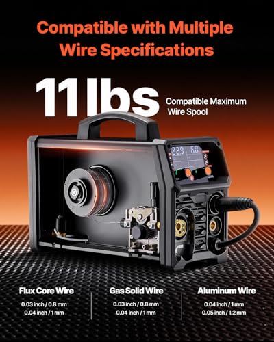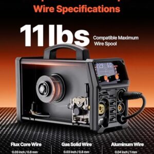 - Flexible Drahtkompatibilität: Unser MIG-Schweißgerät ist mit Fülldraht, Gas-Massivdraht und Aluminiumdraht kompatibel, mit einer maximalen Drahtkapazität von 5 kg. Geeignet für Fülldraht und Massivdraht mit 0,03" (0,8 mm) und 0,04" (1,0 mm), Aluminiumdraht mit 0,04" (1,0 mm) und 0,05" (1,2 mm)