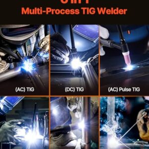 - 6-in-1-WIG-Schweißgerät: Rüsten Sie Ihr Schweißgerät mit diesem WIG-Schweißgerät auf, das über die Modi AC WIG, DC WIG, AC Pulse WIG, DC Pulse WIG, Spot WIG und MMA/Stick verfügt. Geeignet für Heimwerkerarbeiten, Garagenprojekte, Reparaturen im Freien, Rostschutz und Wartung von landwirtschaftlichen und Straßengeräten.