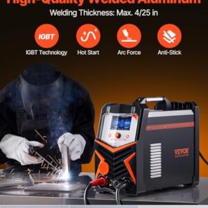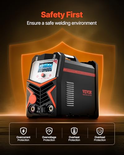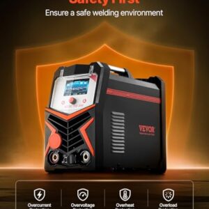 - Vielseitige Materialien: Schweißen Sie mühelos Aluminium, Kohlenstoffstahl, Magnesiumlegierungen, Kupfer, Edelstahl und Titan. Unterstützt Elektroden der Typen 6010, 6011, 6013 und 7018 und verarbeitet 1/4" Aluminium und 3/8" kohlenstoffarmen Stahl. Zu den Sicherheitsfunktionen unseres elektrischen Schweißgeräts gehören VRD, Überstrom-, Überspannungs-, Überlastungs- und Überhitzungsschutz.
