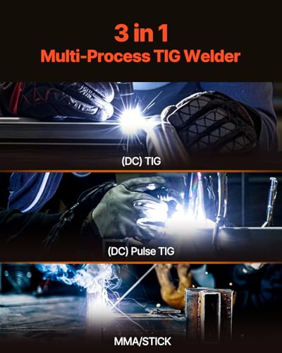 - 3-in-1-Schweißgerät: Rüsten Sie Ihr Schweißgerät mit diesem vielseitigen WIG-Schweißgerät auf. Es bietet die Schweißmodi DC WIG, DC Pulse WIG und MMA/Stick. Es eignet sich ideal für Heimwerkerprojekte, Garagenarbeiten, Reparaturen im Freien, den Rostschutz von Metall sowie die Wartung von Land- und Straßengeräten.