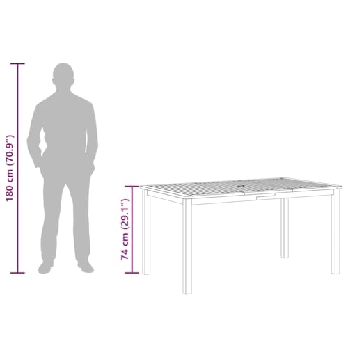 - Der Gartentisch ist aus massivem Akazienholz gefertigt und mit Naturöl beschichtet, was ihn robust, langlebig und pflegeleicht macht