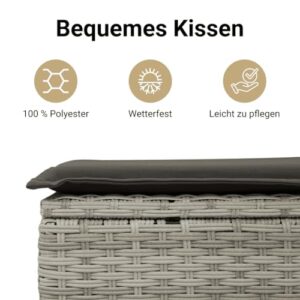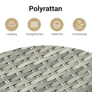 - 【Langlebiges Material:】 PE-Rattan, auch als Poly Rattan bekannt, ist ein robustes, pflegeleichtes synthetisches Material, das die Optik von natürlichem Rattan aufweist. Es kennzeichnet sich durch ein geringes Eigengewicht und lässt sich einfach reinigen. Aufgrund seiner Haltbarkeit und Witterungsbeständigkeit wird es häufig bei der Herstellung von Gartenmöbeln verwendet.