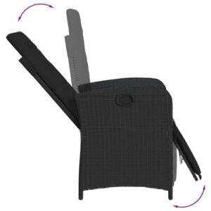 vidaXL Gartensessel 2 STK., Gartenstuhl mit Fußteil, Garten Liegestuhl mit Verstellbarer Rückenlehne Fußstütze, Sessel Relaxsessel Gartenmöbel, Schwarz Poly Rattan