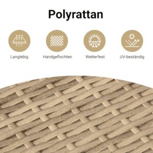 - 【Langlebiges Material:】 PE-Rattan, auch als Poly Rattan bekannt, ist ein robustes, pflegeleichtes synthetisches Material, das die Optik von natürlichem Rattan aufweist. Es kennzeichnet sich durch ein geringes Eigengewicht und lässt sich einfach reinigen. Aufgrund seiner Haltbarkeit und Witterungsbeständigkeit wird es häufig bei der Herstellung von Gartenmöbeln verwendet.