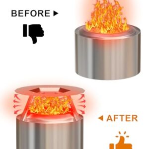 - 304 Edelstahl – Hergestellt aus verdicktem 304 Edelstahl, liefert es hervorragende Wärmeleitung, verteilt die Wärme effektiv nach außen. Es nimmt die natürliche Wärme des Lagerfeuers auf und macht es noch wärmer für alle am Feuer