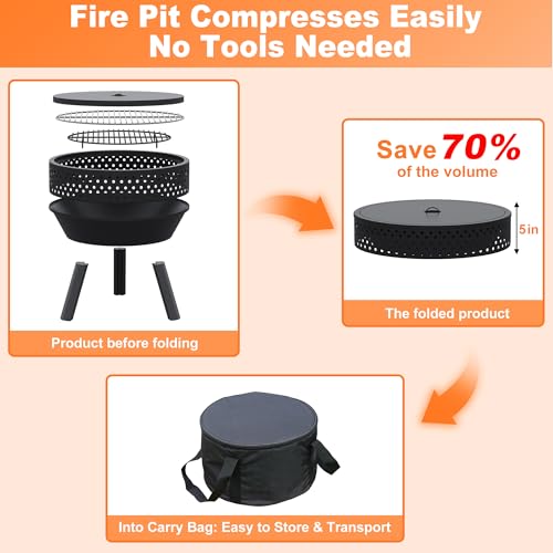 - 【Tool-Free Assembly】: Das Feuerkorb für den Garten verfügt über ein vorwiegend integriertes Design ohne Werkzeug. Eine Person montiert es in 5 Minuten, um sofort loszulegen. Inklusive passender Tragetasche und Feuerpokal; alles platzsparend verstauben für saubere Kofferräume und Lagerräume.