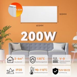 Warmfay Infrarotheizung 200W mit WiFi Thermostat, Energiesparende Infrarot Wandheizung für 2-4 m², Elektroheizung mit Überhitzungsschutz TÜV SÜD