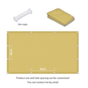 - 🔧 【Einfache Installation】Dank der präzisen geraden Kanten und der alle 50cm angebrachten rostfreien Metallösen lässt sich das Sonnensegel einfach und schnell montieren. Das Set enthält 6m Spannseil (oder 4x1,5m Seile) für eine flexible Befestigung an Bäumen, Pfosten oder anderen Strukturen. Die robusten Ösen ermöglichen eine gleichmäßige Spannung des Segels.
