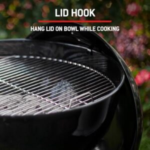 - Grillen leicht gemacht: Auf dem 47-cm-Stahlrost für die ganze Familie kochen, mit zwei Kohleschienen für einfache Brikettanordnung, einem Deckelhaken für freihändigen Zugang und einem robusten Rost, der heiße Briketts sicher hält