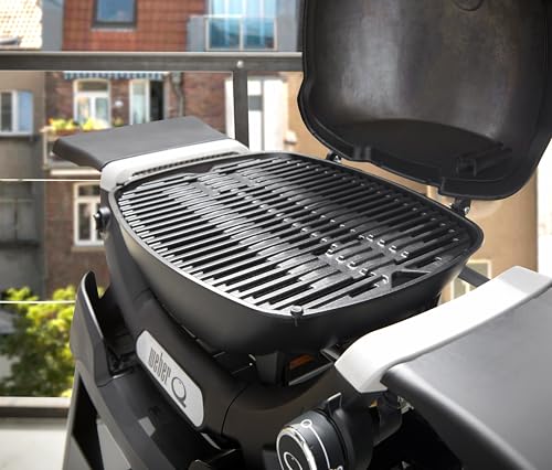 Weber Q 1200N Gasgrill mit Seitentischen & kompakten Stand/Grill für Terrassen und Balkone mit Hochleistungsbrennern, porzellanemaillierten Gussrosten und elektronischer Zündung, Mitternachtsschwarz