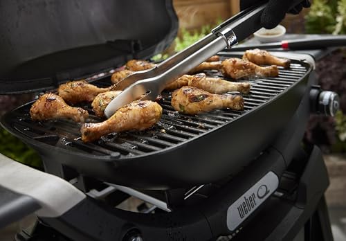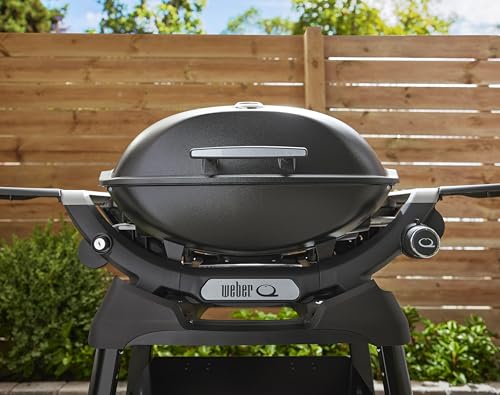 Weber Q 2200N Gasgrill mit Seitentischen & kompakten Stand/Grill für Terrassen und Balkone mit Hochleistungsbrennern, porzellanemaillierten Gussrosten und elektronischer Zündung, Mitternachtsschwarz