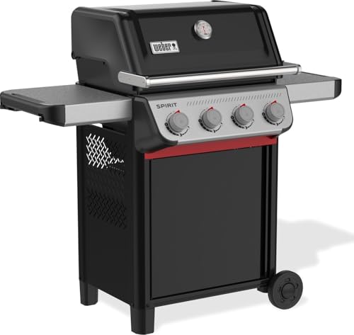 Weber Spirit E-410 Gasgrill, 4 Brenner, 51 x 46 cm Grillfläche, Warmhaltegitter, integriertes Thermometer, 2 Räder – schwarz/silber (1500888)