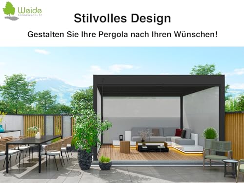 - ✔️ Hochwertiges Zubehör für Weide Aluminium-Lamellendächer - Perfekte Ergänzung für Weide Pergola-Modelle Classic, Deluxe und Deluxe Plus (Höhe 255 cm) - nicht kompatibel mit Weide/Mirador Basic.