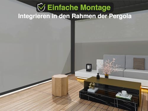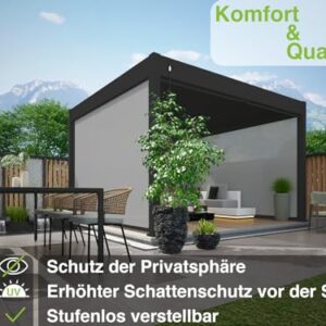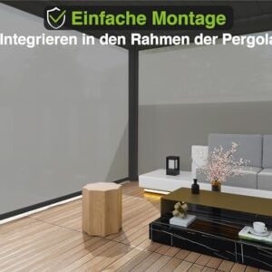 - ✔️ Integrierter Rahmen und einfache Nachrüstung - Das Sonnenrollo wird stabil im bestehenden Pavillon befestigt und kann jederzeit an fertig montierten Lamellendächern nachgerüstet werden.