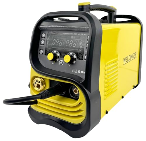 - vielseitig einsetzbares Einsteigergerät WELDINGER MEW 161 SYN eco zum synergischen MIG/MAG-Schweißen, mit DC Lift-WIG- und Elektrodenschweißfunktion (MMA)
