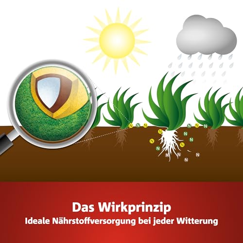 - Ideale Nährstoffversorgung bei jeder Witterung: Spezieller Porenmantel bei den wachstumsfördernden Nährstoffen sorgt abhängig von den natürlichen Wachstumsbedingungen (Temperatur, Feuchtigkeit, Mikroorganismen, etc.) für eine bedarfsgerechte Freisetzung