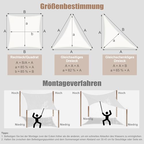 - 🍧𝐅Ü𝐑 𝐕𝐈𝐄𝐋𝐄 𝐒𝐙𝐄𝐍𝐀𝐑𝐈𝐄𝐍 𝐆𝐄𝐄𝐈𝐆𝐍𝐄𝐓: Das Sonnensegel mit Seilen ist in 4 Formen erhältlich. Es eignet sich für viele Anwendungsbereiche, wie z. B.: Garten, Hof, Innenhof, Terrasse, Balkon, Schwimmbecken, Pergola, Carport, Parkplatz, Sportplatz, Kinderspielplatz, Campingplatz und viele andere Orte im Freien