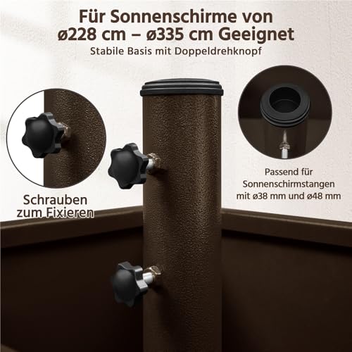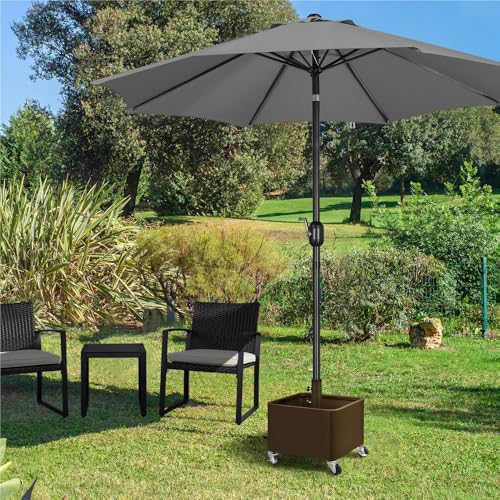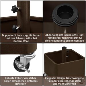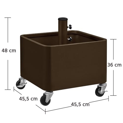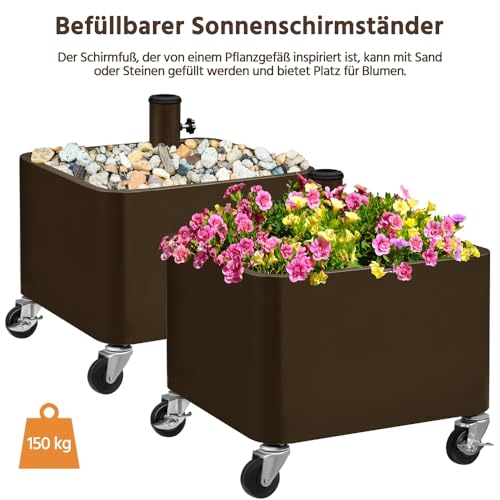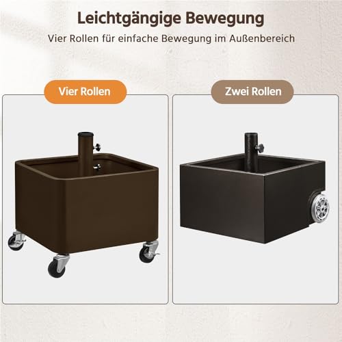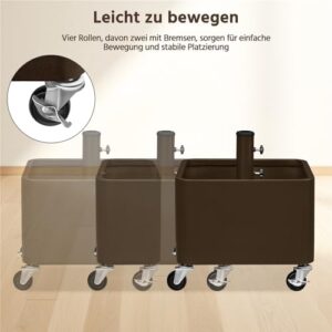 - 2-in-1 Sonnenschirmständer: Dieser Schirmständer auf Rollen bietet eine flexible Nutzung im Außenbereich. Der Innenraum kann zusätzlich als dekorativer Pflanzbehälter für Blumen oder andere Pflanzen genutzt werden