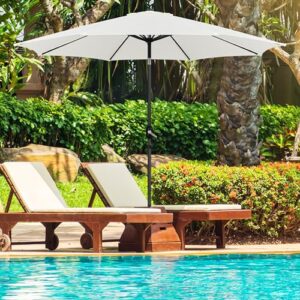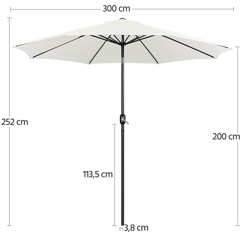 - Stabiler Struktur: Die wasserabweisende Polyesterbespannung mit einem Durchmesser von 300 cm wird von 8 Metallrippen gestützt. Sie halten den Sonnenschirm stabil und sicher bei gelegentlichen Windböen.