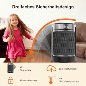 - Umfassender Sicherheitsschutz - Unser elektrisches Heizgerät verfügt über eine Kindersicherung, einen Überhitzungsschutz und einen Kippschutz. Das flammhemmende ABS-Gehäuse macht es besonders geeignet für Familien mit Kindern oder Haustieren. Sicherheit ist auch bei unbeaufsichtigtem Betrieb gewährleistet.